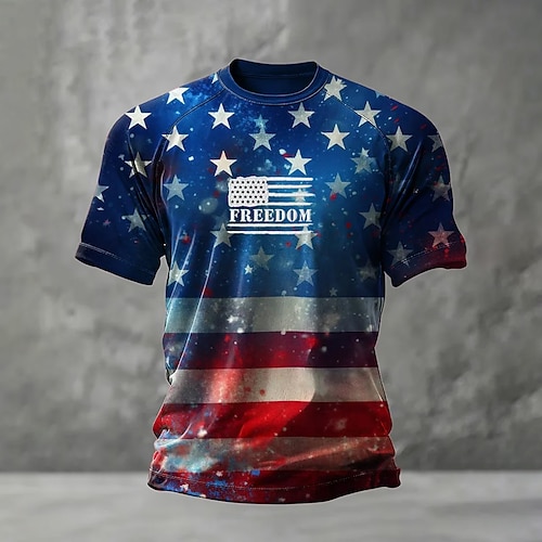 Per uomo Stelle Bandiera Americana T-shirt Raglan Camicia a Maniche Corte Maglietta Manica Corta maglietta Stampa 3D Girocollo Camicia Moda Designer Casual Vacanza Quotidiano Ferie Blu marino Tutte