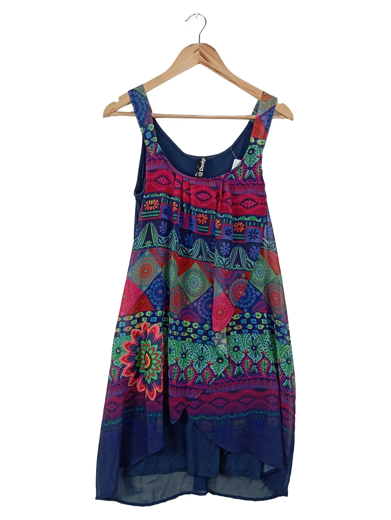 DESIGUAL Damenkleid Trägerkleid 38 M Blau Mehrfarbig Boho Midi