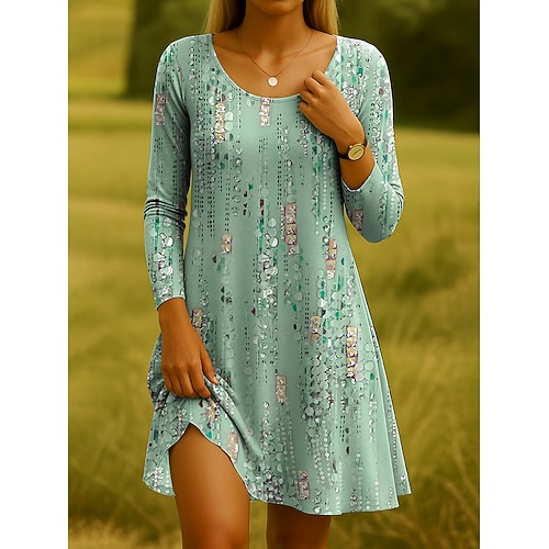 Per donna Mini Abito Abito a Tubino Casual Ferie Uscire Weekend Vestibilità regolare Floreale Grafico Manica Lunga Girocollo Rosa Blu Verde Primavera Autunno Inverno