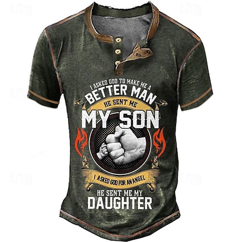 T-Shirt Grafica sulla Paternità per Uomini 'Mio Figlio Mia Figlia Miglior Uomo' T-Shirt Henley a Maniche Corte per Famiglia