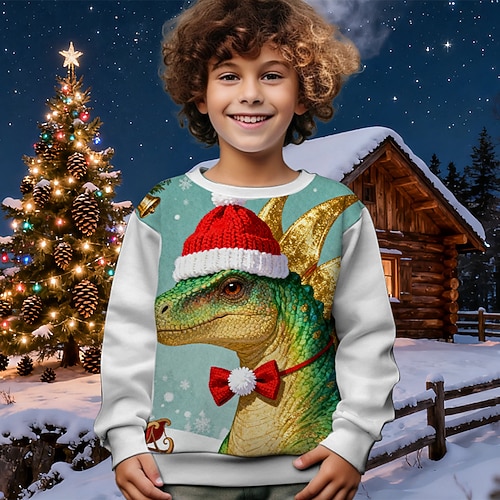 Weihnachten Jungen 3D Dinosaurier Sweatshirt Langarm Frühling Herbst Mode Basic Kinder 4-12 Jahre Rundhalsausschnitt Outdoor Lässig Täglich Normale Passform