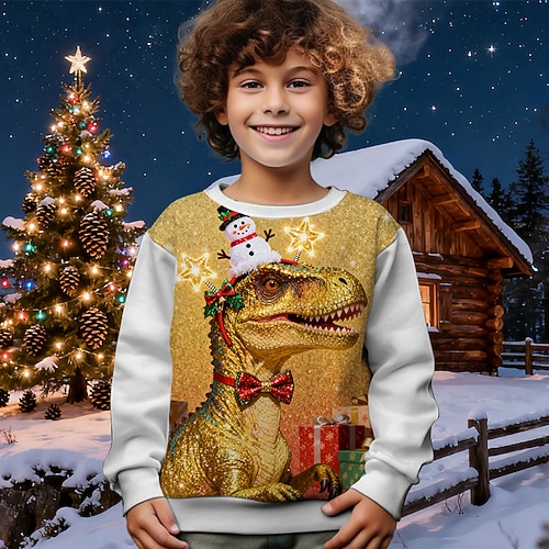 Jungen 3D Dinosaurier Schneemann Sweatshirt Langarm Frühling Herbst Mode Basic Kinder 4-12 Jahre Rundhalsausschnitt Outdoor Lässig Täglich Normale Passform