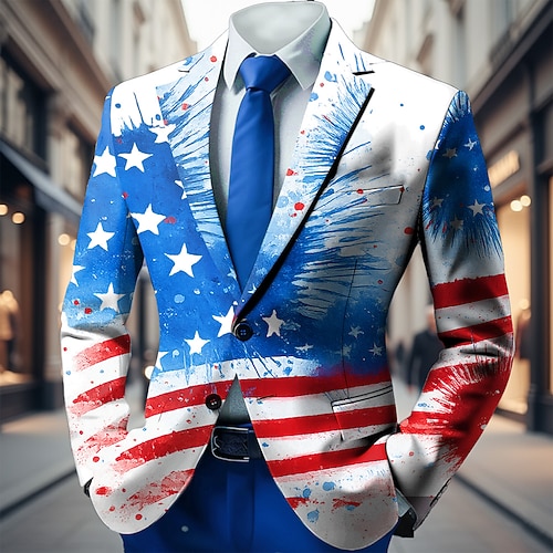 Amerikanischer Unabhängigkeitstag Herren Amerikanische US-Flagge Blazerjacke Mantel Mode Bequem Atmungsaktiv Künstlerisch Lässig Täglich Festival Tasche 3D-Druck Knöpfe Ganzjahres Fallendes Revers