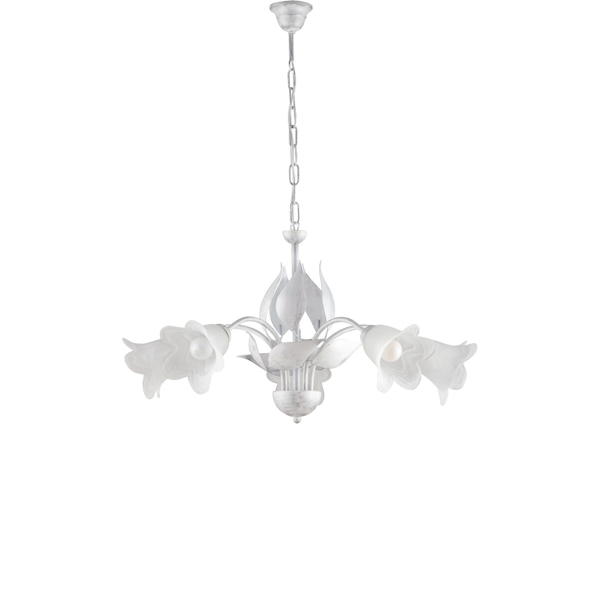 Belight - Olga - Kronleuchter weiß lackiert, Antiksilberdekor & Alabasterglas, Ø68, 5-flammig - BL155-5-BA