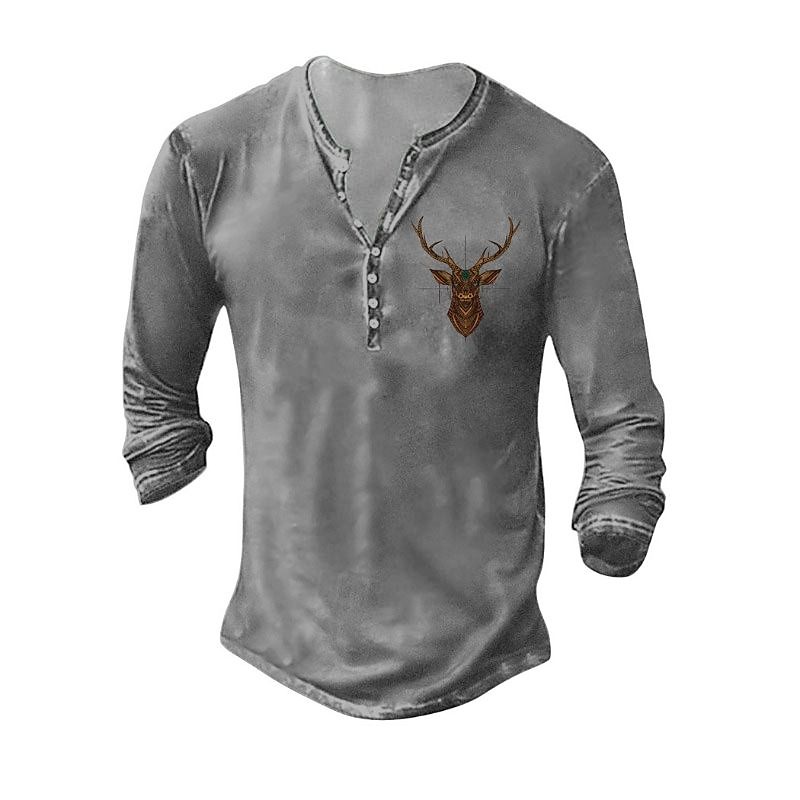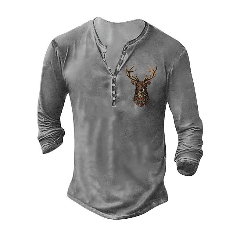 Men's Henley Shirt Tee Tee Top Long Sleeve Shirt Long Sleeve Henley Summer Fall Pattern Deer Fashion Designer Fashion Vintage Vacation Street Going out Dark Grey Black White Top Tee for Men