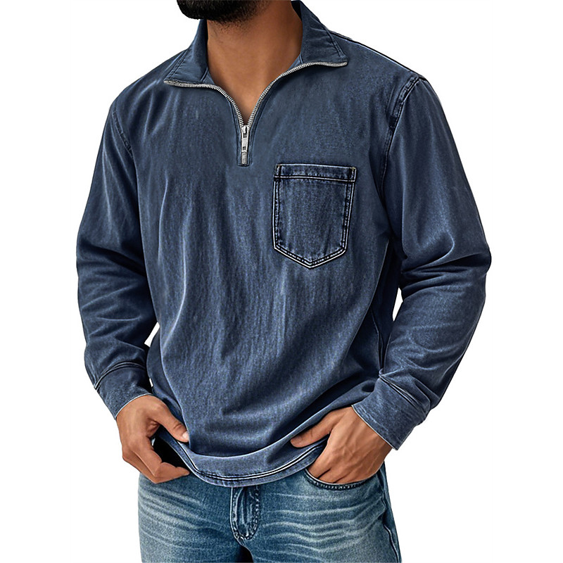 Men's Polo Shirts Quarter Zip Polo Daily Wear Date Quarter Zip Long Sleeve Fashion Basic Plain Zipper Pocket Spring Fall Regular Fit Black Pink Blue Dark Green Purple Brown Polo Shirts