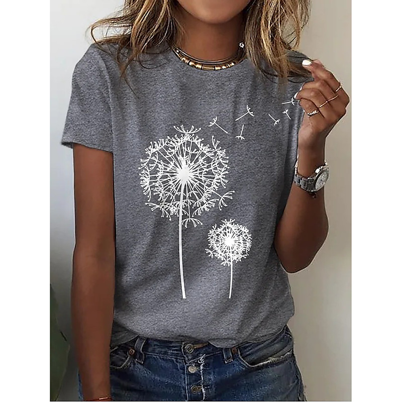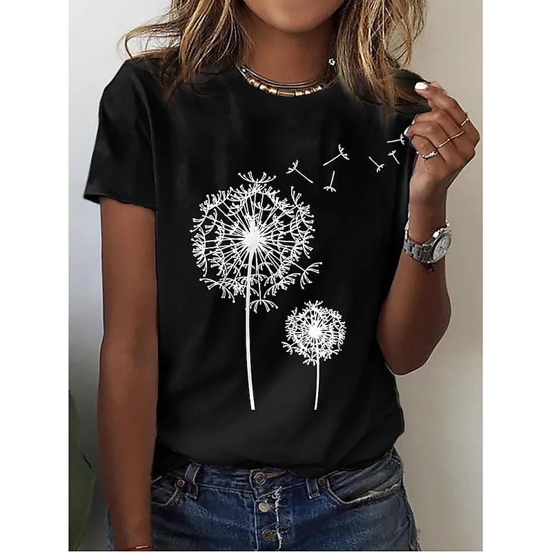 Women's Casual T-Shirt Dandelion Print Crew Neck White Short Sleeve Summer Wear Comfort Fit Daily Essential