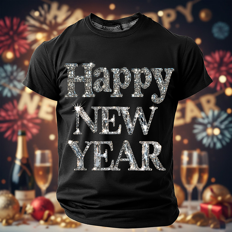 New Year Men's Happy New Year Fireworks 2026 T Shirt Short Sleeve T shirt 3D Print Crew Neck Shirt Exaggerated Designer Artistic Party Street Club Blue 1# Black Red Fall Winter Clothing Apparel S M L