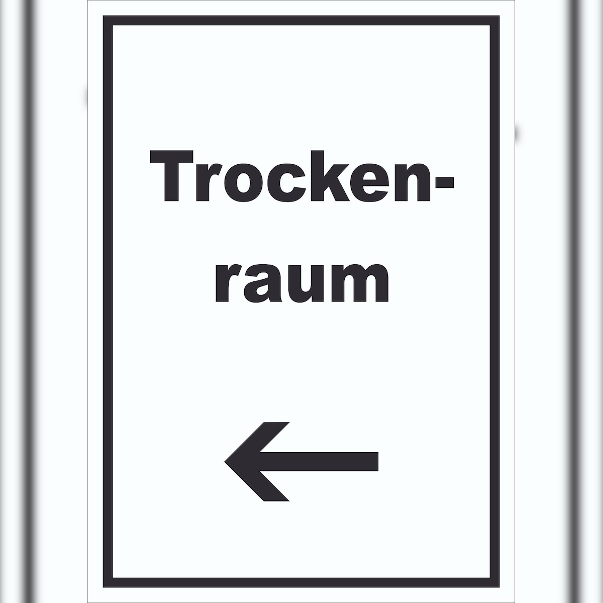 HB-Druck Trockenraum Schild mit Text und Richtungspfeil links Wäsche trocknen hochkant A5 Rückseite selbstklebend