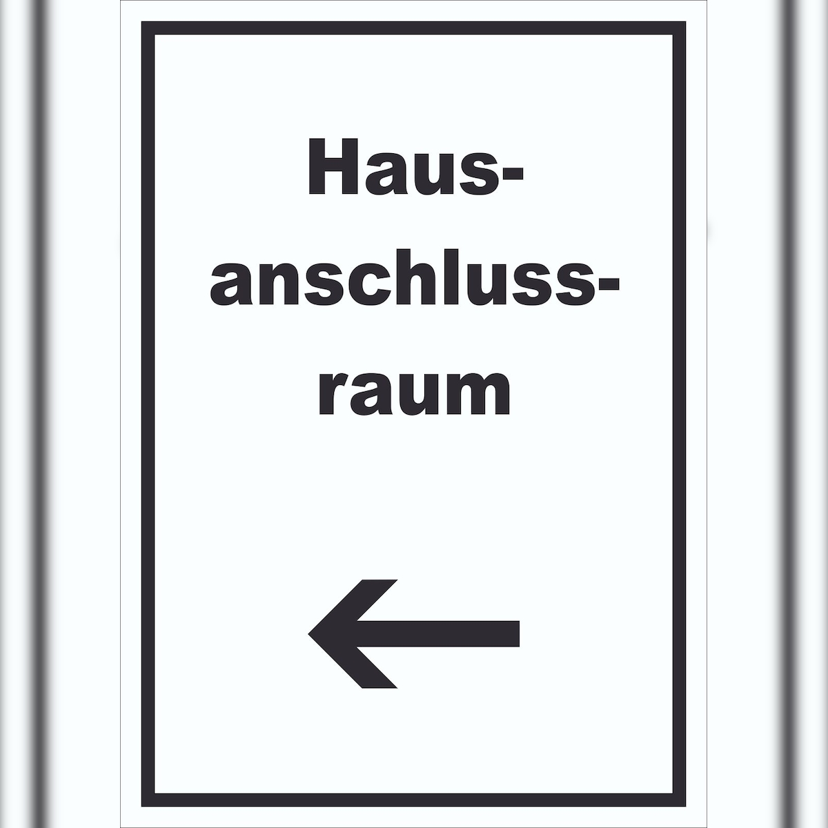 HB-Druck Hausanschlussraum Schild mit Text und Richtungspfeil links HAR hochkant A1 Rückseite selbstklebend