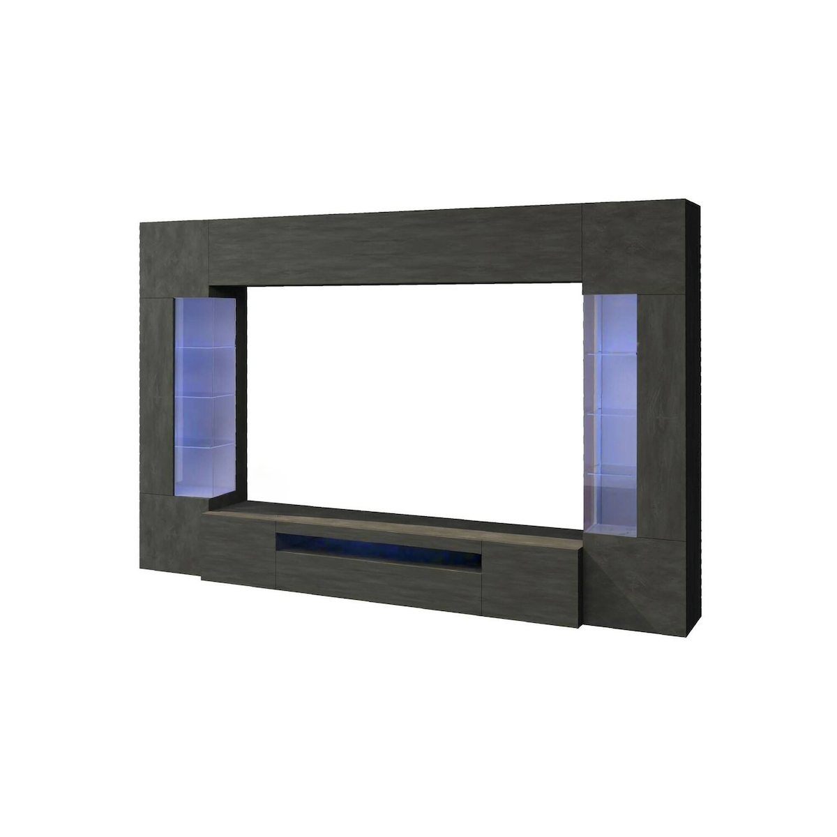 Dmora Wohnzimmermöbel Clementino, Wohnzimmer-Set TV-Möbel mit 6 Türen, Mehrzweck-Wohnzimmermöbel mit LED-Beleuchtung, cm 290x40h191, Anthrazit