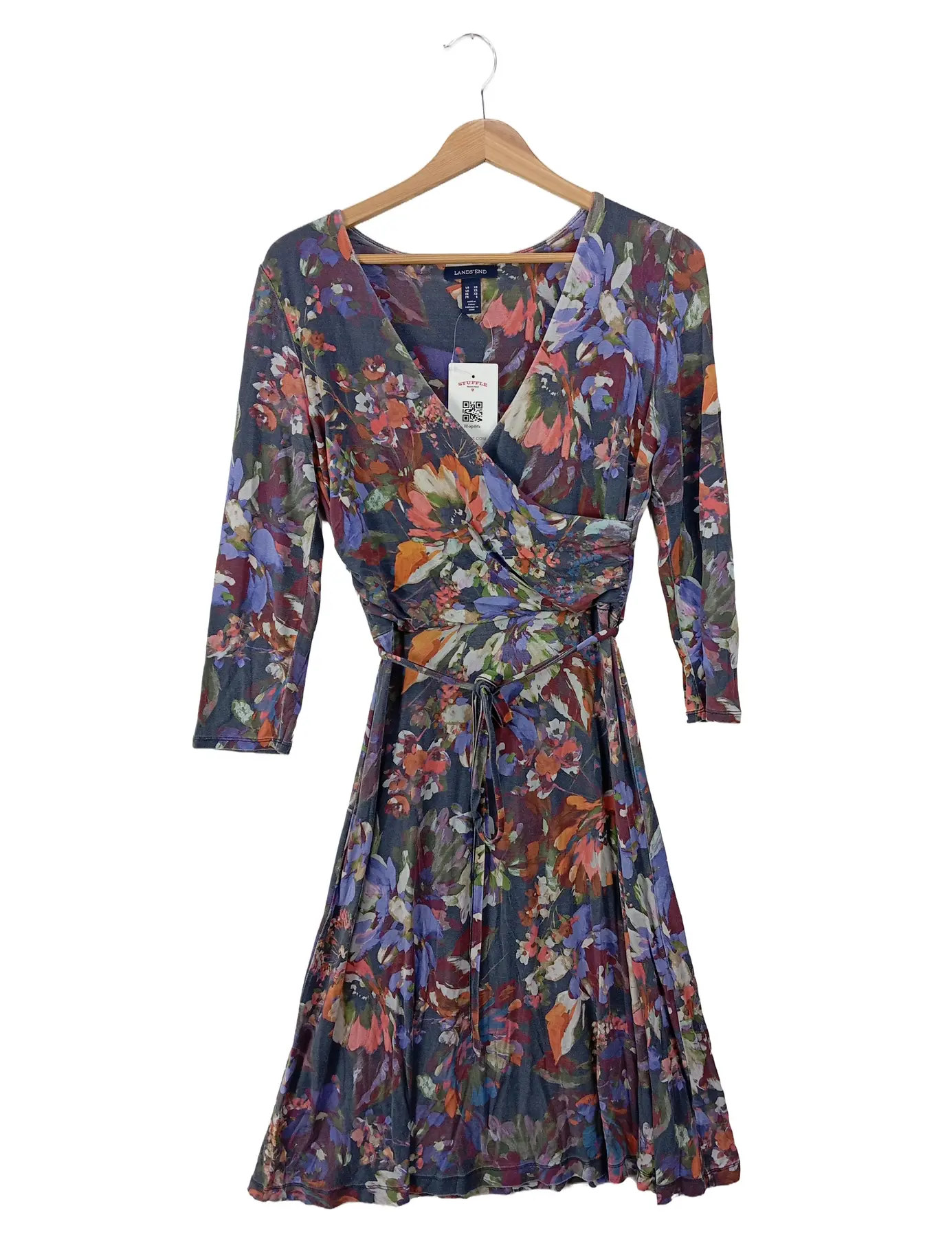 LANDS' END Wickelkleid XS 34 bunt Blumenmuster Boho Vintage