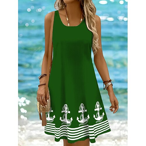 Per donna Mini Abito Vestito Estivo Abito a trapezio Abito a spalle scoperte Vacanza Casual Boho Ferie Spiaggia Vestibilità regolare Grafico Geometrico A righe Senza Maniche Girocollo Scollo Tondo