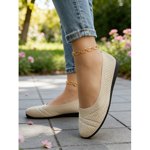Per donna Sandali Taglie Forti Ciabatte da Esterno Scarpe Flyknit Quotidiano All'aperto Passeggiata Tinta unica Tinta unita Estate Tacco basso Punta aperta Classico Casual Sintetici Tessitura Volante