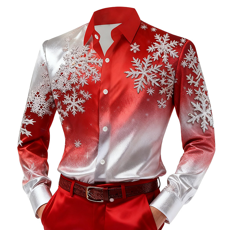 Christmas Men's Snowflake Gradient Color Shirt Satin Shirt Dress Shirt Long Sleeve Fashion Casual Outdoor Holiday Spring Fall Turndown 3D Print Button Up Shirts Yellow Red Blue Purple Green