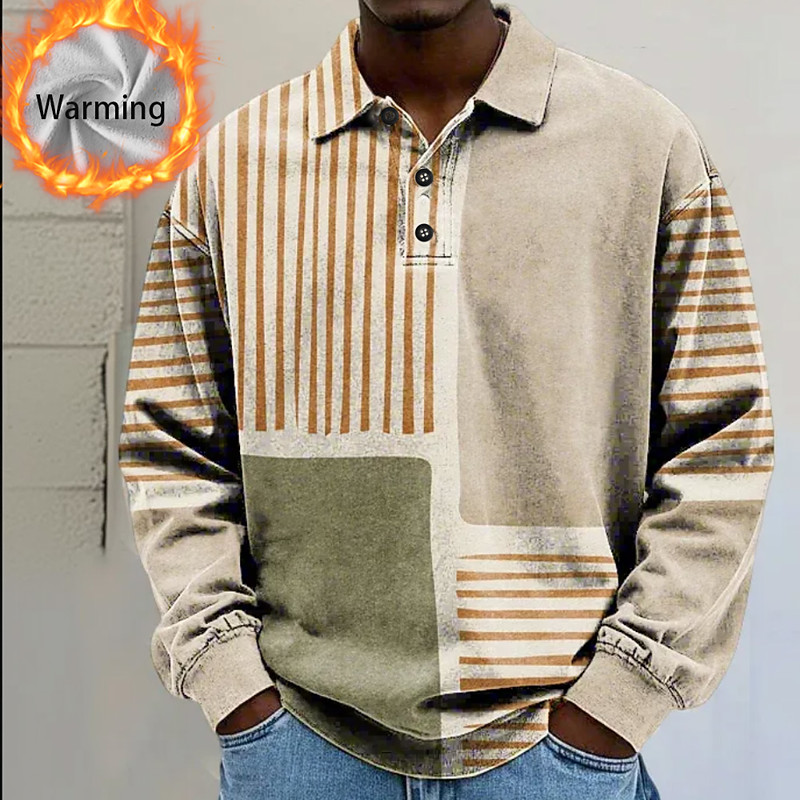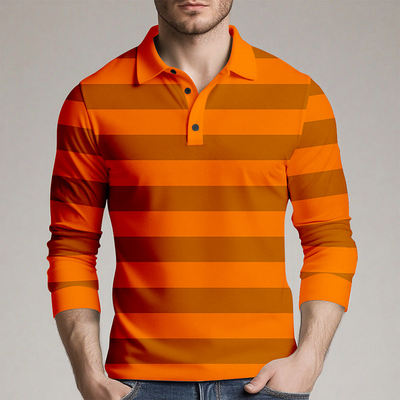 Men's Stripes Abstract Polo Shirts Themmal Shirts Long Sleeve Polo Shirts Lapel Casual Athleisure Holiday Daily Wear 3D Print Fall Winter Red Brown Rainbow