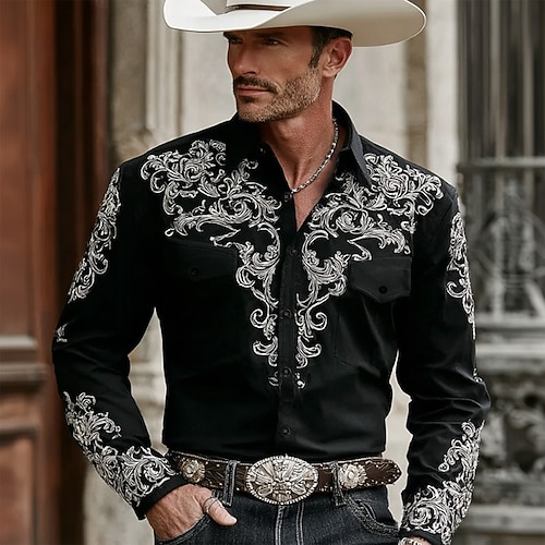 Per uomo Etnico Floreale intricato Fiori Camicia Camicia Western Camicia da cowboy Manica Lunga Vintage Retrò All'aperto Casuale Abbigliamento da lavoro Primavera Autunno Collo ripiegato Due tasche