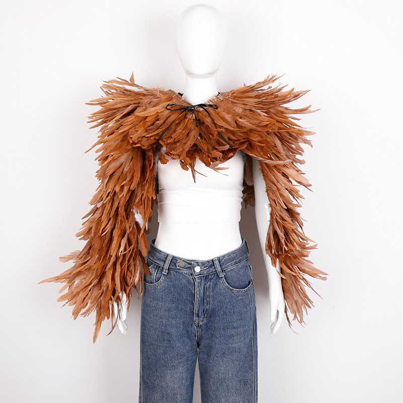 Women's Long Red Feather Cape Shawl with Ribbon Tie, Gothic Vampire Devil Costume Stole, Natural Feather Poncho Shrug