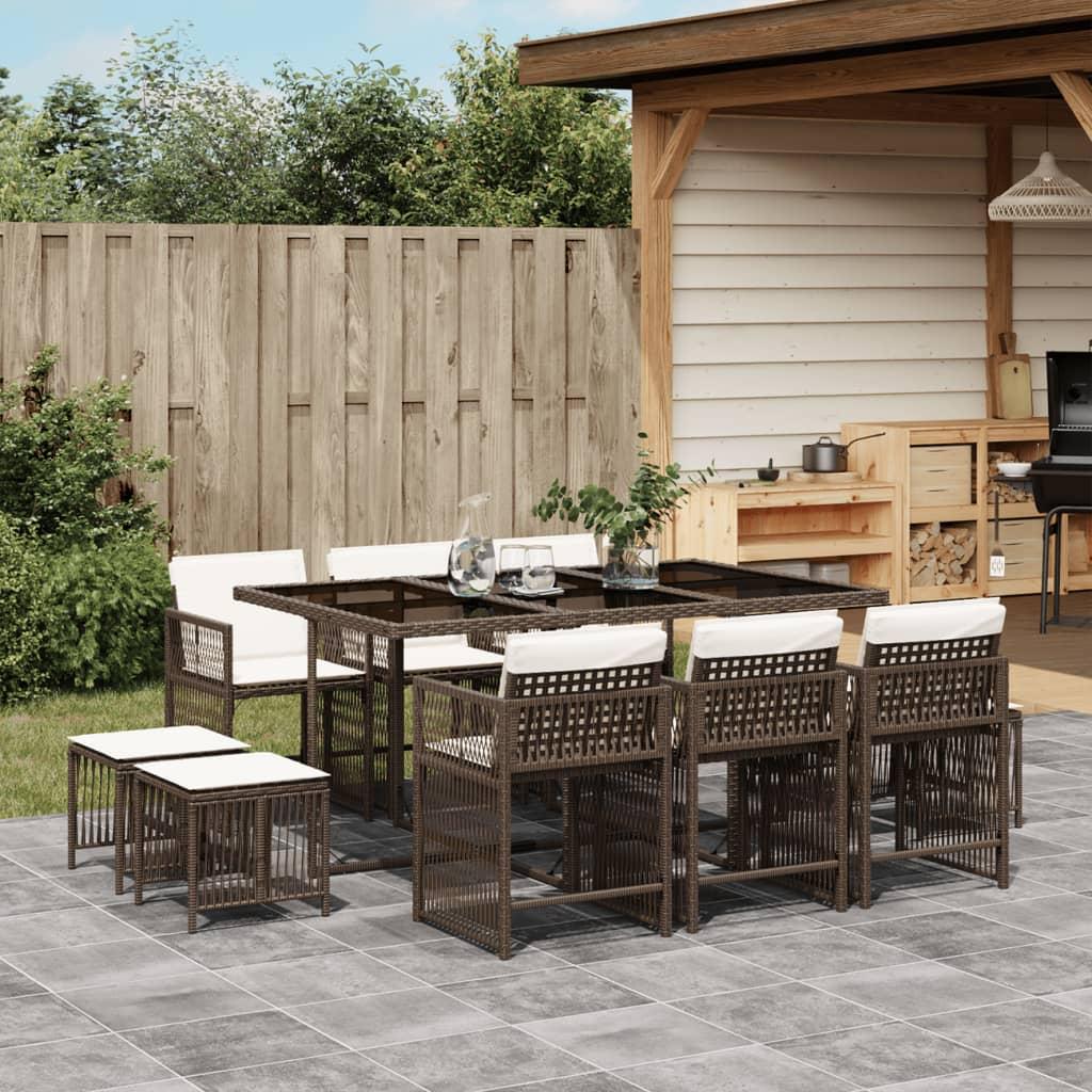 Bistrosæt til haven 9 dele med hynder polyrattan beige