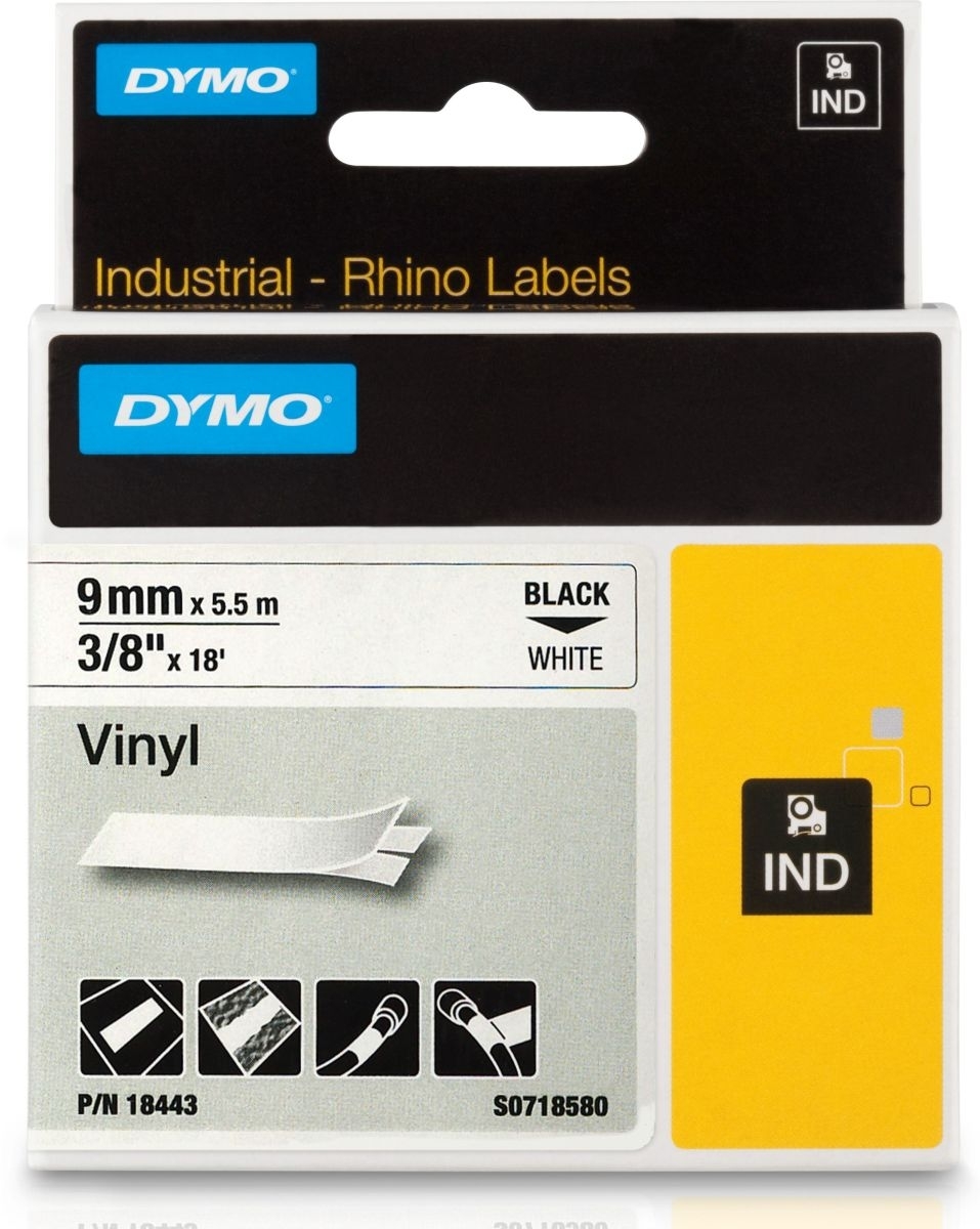Dymo IND S0718600 / 18444 Authentic Rhino Vinyl Schriftband Selbstklebend Schwarzer Druck auf Weiß 12 mm x 5.5m