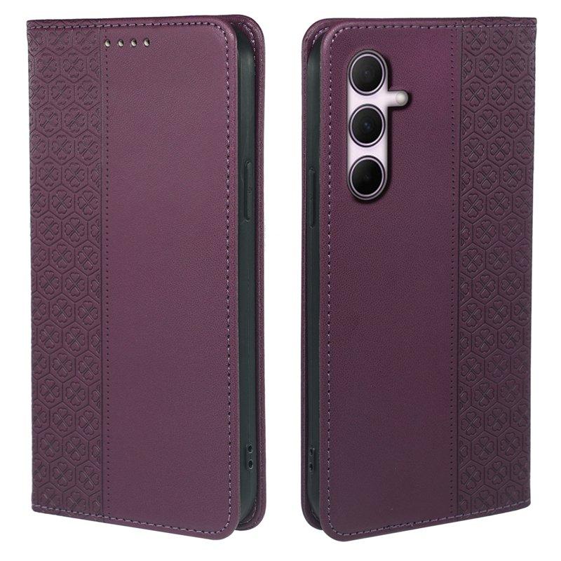 Samsung Galaxy S26 Plus Fodral Fyrklöver Äkta Läder Flip - Mörklila
