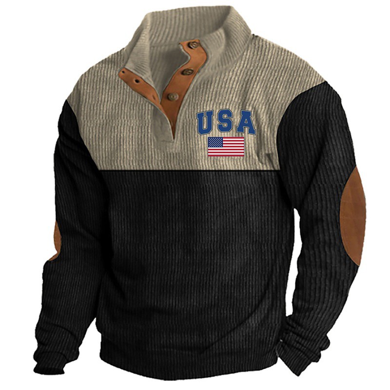 Men's Sweatshirt Corduroy Pullover Hoodie Sweatshirt Pullover Button Up Hoodie Black Army Green Burgundy Light Grey Dark Gray Standing Collar Plain Patchwork Color Block Sports Outdoor Casual Daily