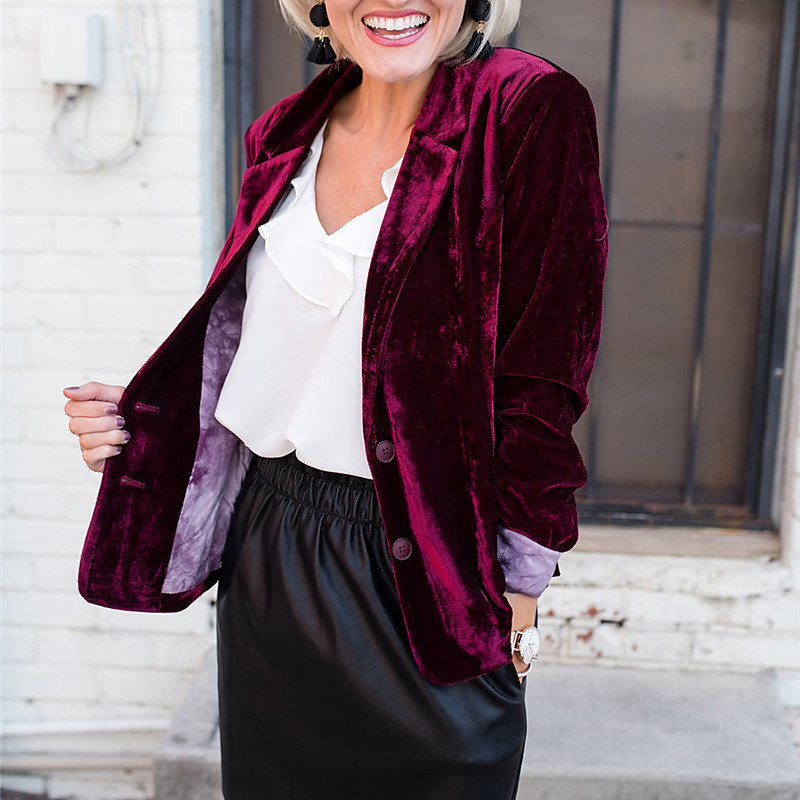 Women's Blazer Daily Outdoor Work Fall Winter Regular Coat Regular Fit Warm Breathable Elegant Streetwear St. Patrick's Day Jacket Long Sleeve Solid Color Pocket Black Wine Green