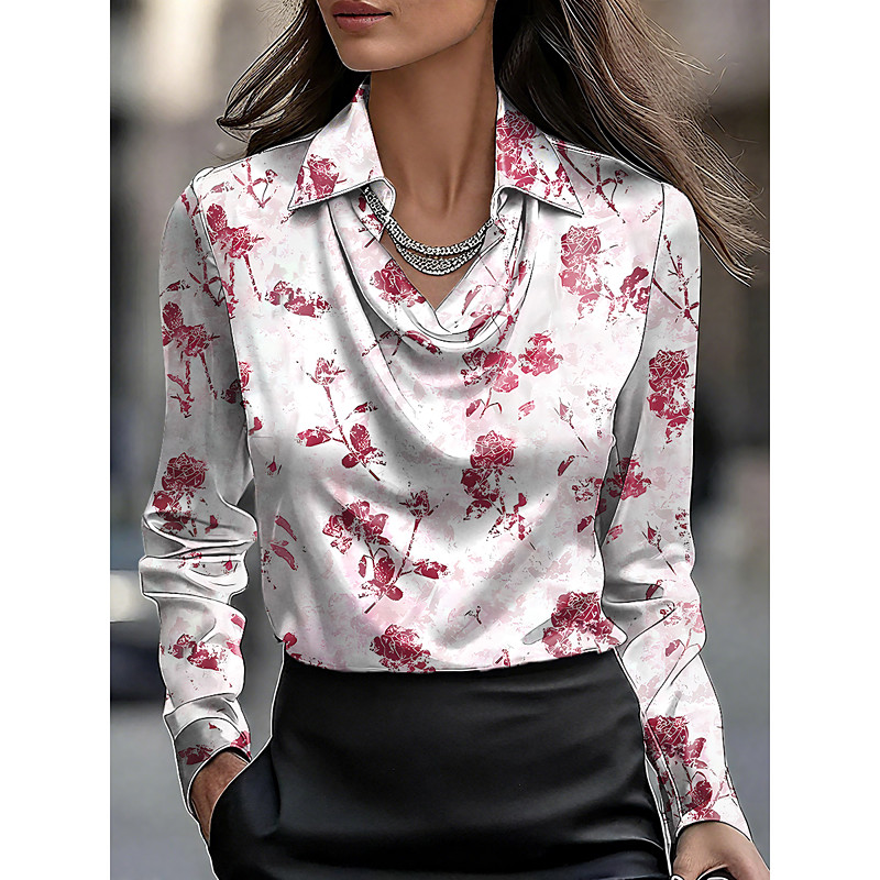 Women's Blouse Ombre Floral Graphic Elegant Stylish Basic Long Sleeve Cowl Neck Regular Tops Work Daily Ruched Draped Red Blue Purple Green Summer Spring Fall