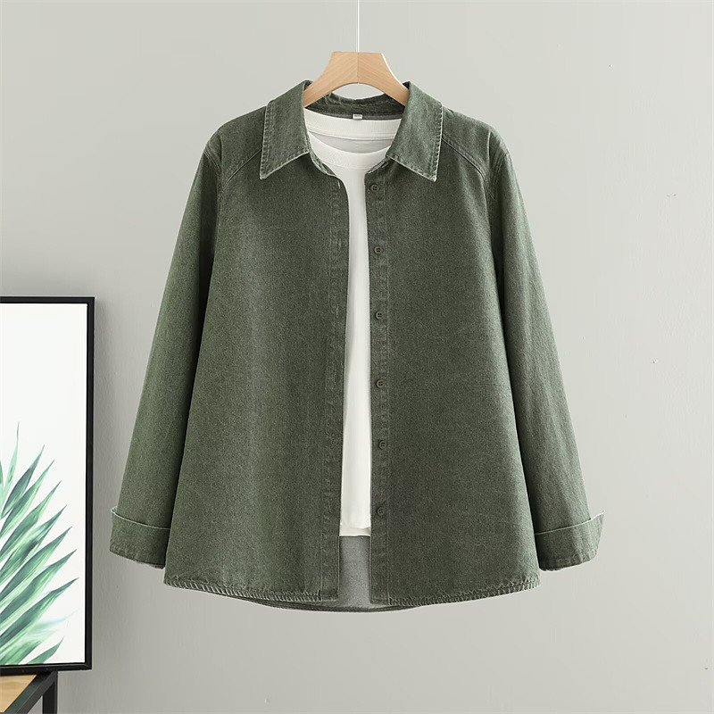 Women's Shirt Solid Color Daily Stylish Casual Long Sleeve Shirt Collar Regular Tops Work Daily Going out Buttons Denim Olive Green Pink Light Brown Dark Blue Spring Fall