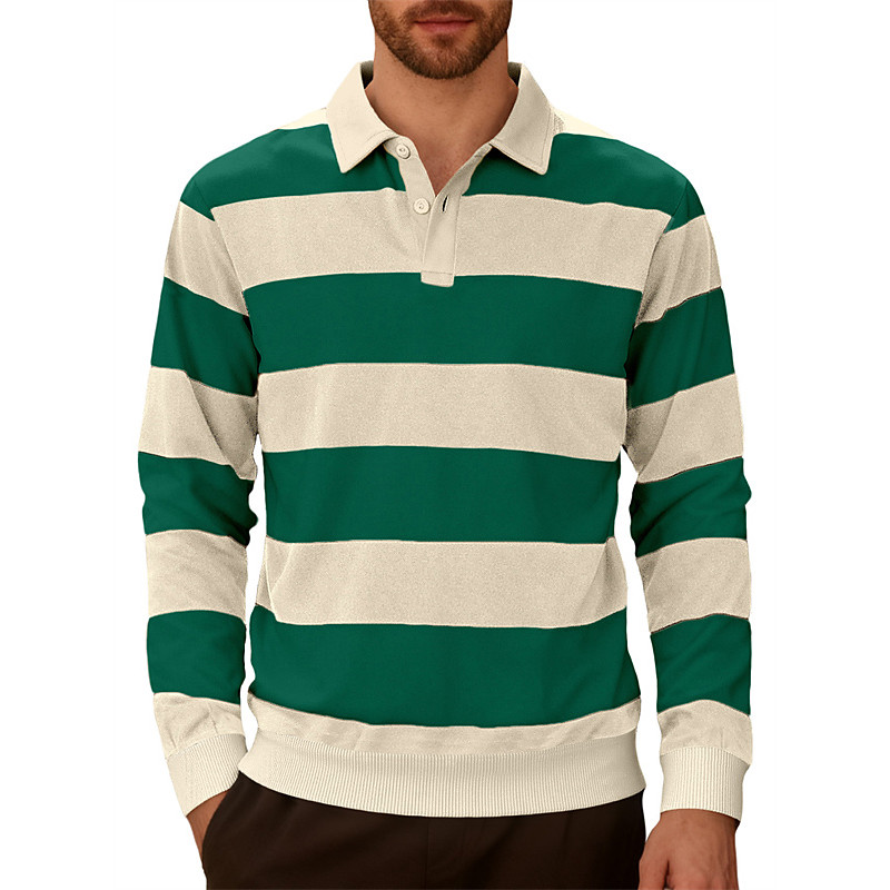 Men's Rugby Polo Shirts Golf Shirt Work Casual Lapel Long Sleeve Basic Modern Stripe Buttons Spring Fall Regular Fit Navy Blue Brown Army Green Rugby Polo Shirts