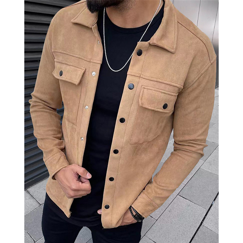 Men's Lightweight Jacket Casual Jacket Work Jacket Casual Daily Pocket Fall Spring Fall Plain Vintage Streetwear Turndown Regular Black Khaki Army Green Dark Gray Light Blue Jacket