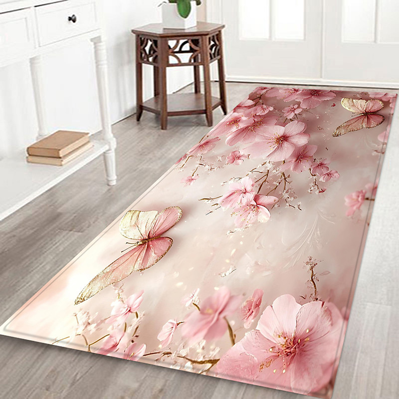 Area Rug For Hallway Kitchen Entrance Floral 3D Soft Non-Slip Customizable Runner Carpet Corridor Staircase Floor Mat Home Decorative Long Rug
