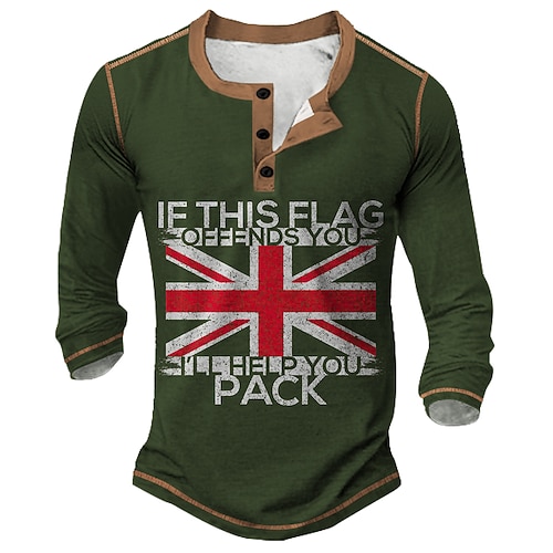 Per uomo Grafico Bandiera UK Maglia Henley Maglietta Manica Lunga Vintage Moda Designer Casuale Quotidiano All'aperto Primavera Autunno Tutte le stagioni Esercito verde Grigio scuro Nero Blu marino