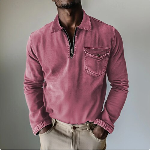 Per uomo Felpa Pullover Polo con zip Vacanza Streetwear Con cerniera Manica Lunga Moda Essenziale Semplice Tasca Moda Primavera Autunno Tutte le stagioni Vestibilità regolare Nero Rosa Blu marino