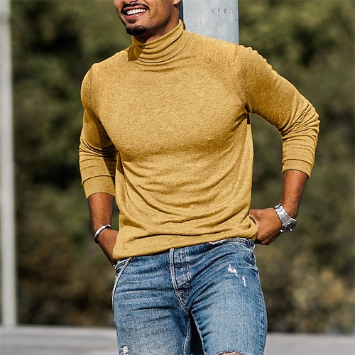 Per uomo Maglietta Maglia a collo alto Camicia a Maniche Lunghe Manica Lunga Colletto arrotolato Primavera Autunno Semplice Moda Designer Casual Streetwear Sportivo Ferie Nero Giallo Rosa Maglietta