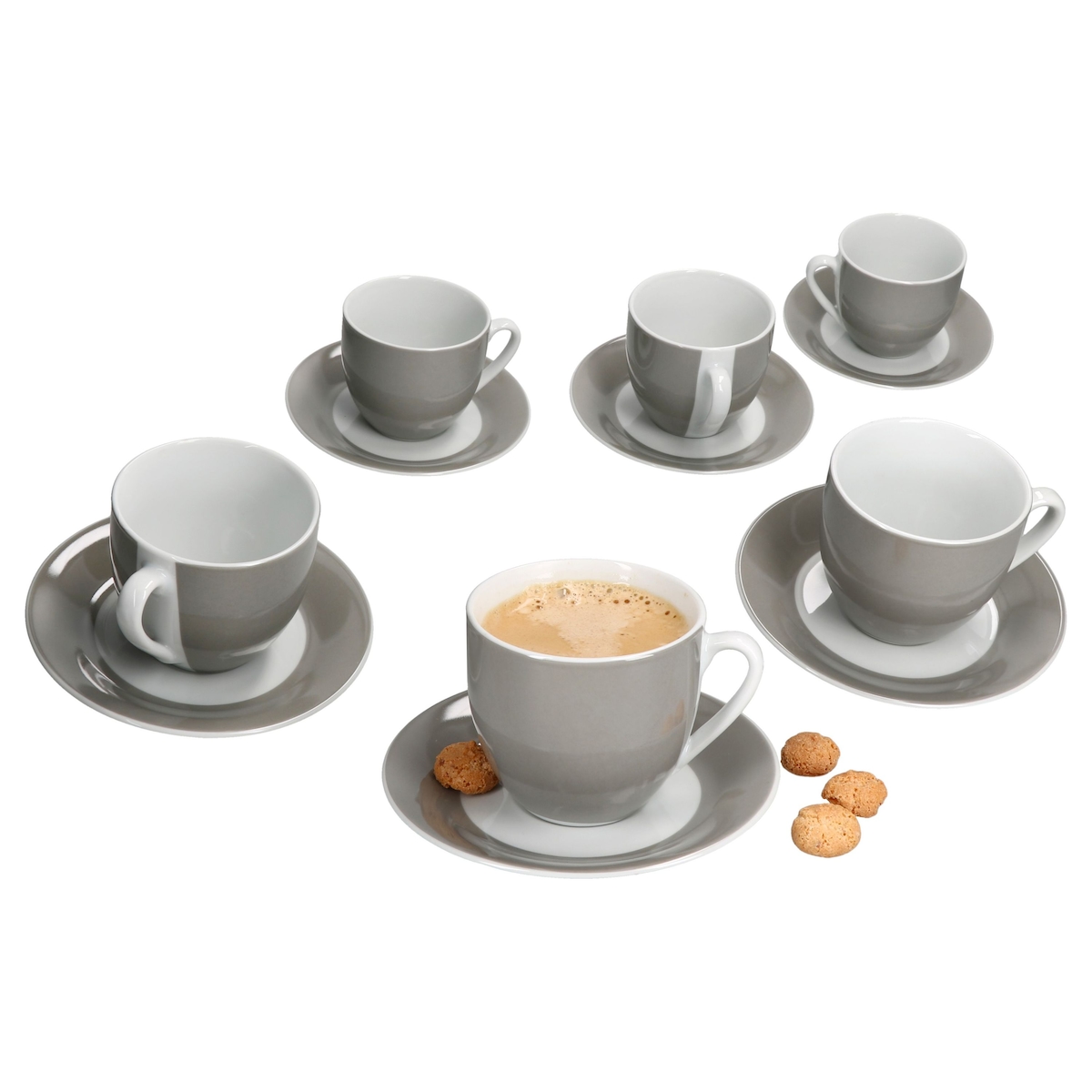 MamboCat 6er Set Variant Grau Kaffeetassen mit Untertassen