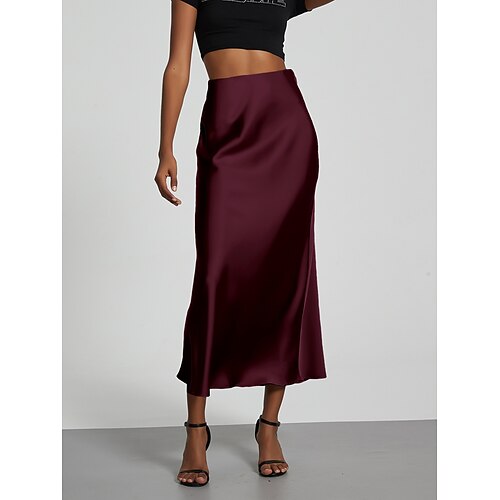 Per donna Gonna Aderente Elegante Moda Midi Vita Alta Gonne Semplice Micro-elastico Feste Streetwear Nero Verde militare Rosso Marrone Primavera Raso Poliestere