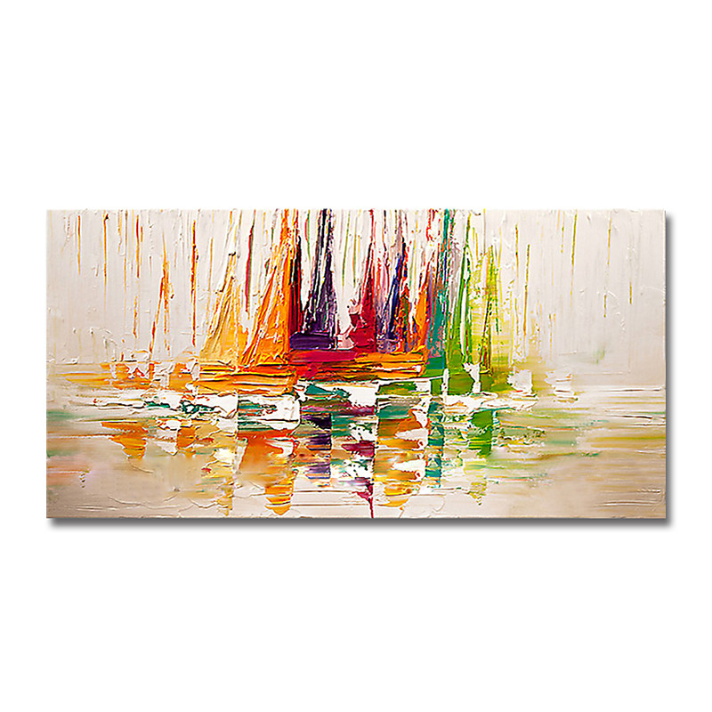 Handmade Oil Painting Canvas Wall Art Decoration Abstract Sailing Boat Landscape for Home Sofa Background Entrance Hall Decor Stretched Frame Hanging Painting/Rolled Frameless Unstretched Painting