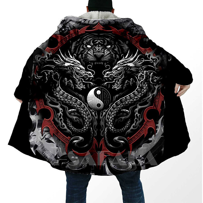 Men's Animal Patterned Winter Coat Fleece Jacket Coat Thermal Warm Comfortable Casual Daily Wear Zipper Pocket 3D Print Fall Winter Hooded Long Sleeve Black 1 Black Gray