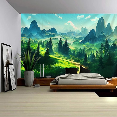 Großflächiger Wandteppich mit naturgetreuer Pflanzenlandschaft als Fotohintergrund, Decke oder Vorhang für die Dekoration von Schlafzimmer oder Wohnzimmer.