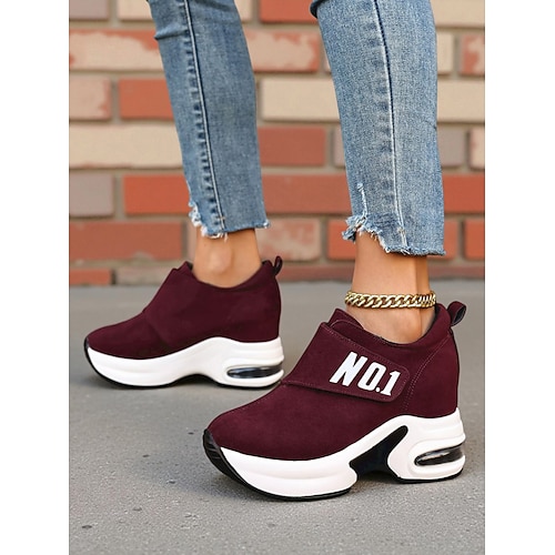 Burgunderrote Plateau-Sneaker mit Klettverschluss für Damen – sportliche High-Top-Schuhe mit Absatz, die die Körpergröße erhöhen und sich ideal für Spaziergänge und Reisen eignen.