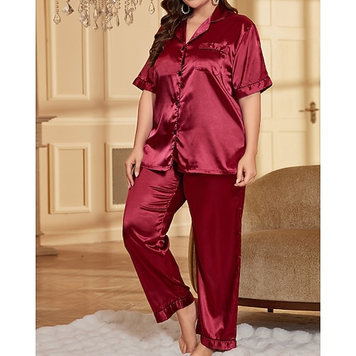 Per donna Pigiama Casual Morbido Raso Colore Puro Tasca Bottoni Pantalone Quotidiano Casa Da letto Manica Corta Colletto a Camicia Nero Champagne Rosa Rosso Blu marino Estate Vestibilità comoda