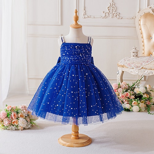 Bambini Ragazze Vestito da Festa Tinta unica Senza Maniche Occasione speciale Compleanno Principessa Dolce Poliestere Midi Vestito da Festa Estate Primavera Autunno Bambini Blu Champagne Rosa