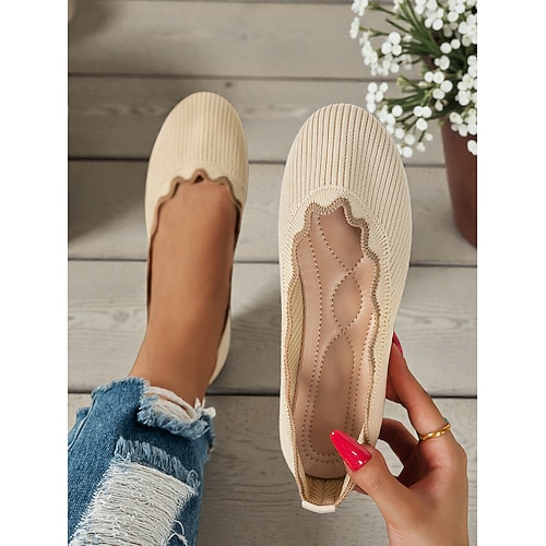 ballerine da donna in Flyknit traspirante nero con rifiniture smerlate: scarpe comode, leggere ed elasticizzate per l'uso quotidiano, il lavoro, i viaggi e le passeggiate