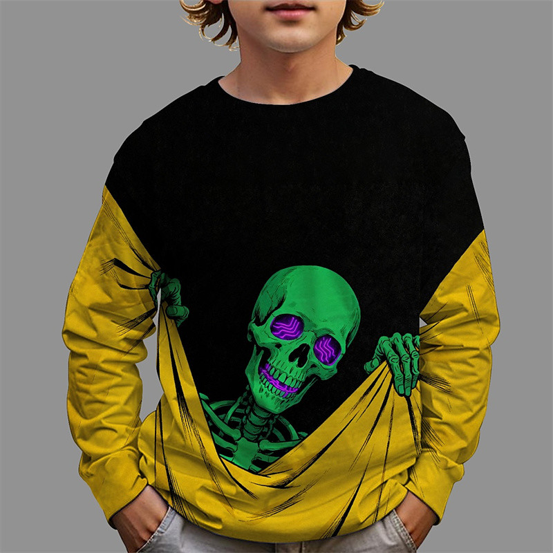 Halloween Boys' 3D Skull T shirt Tee Long Sleeve Spring Fall Fashion Basic Kids 4-12 Years Crew Neck Outdoor Casual Daily Regular Fit
