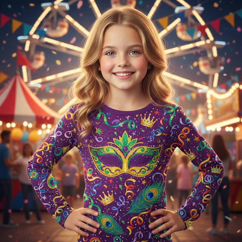 Carnival Girls' 3D Graphic Mask Mardi Gras T shirt Tee Long Sleeve 3D Print Spring Fall Sports Fashion Streetwear Kids 4-12 Years Crew Neck Casual Daily Outdoor Regular Fit