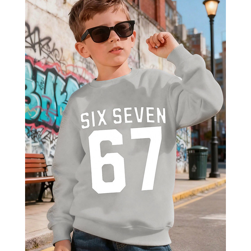 Unisex Boys' 3D Graphic Funny Slang 67 Sweatshirt Pullover Long Sleeve 3D Print Spring Fall Active Fashion Streetwear Kids 4-12 Years Crew Neck Casual Daily Outdoor Regular Fit