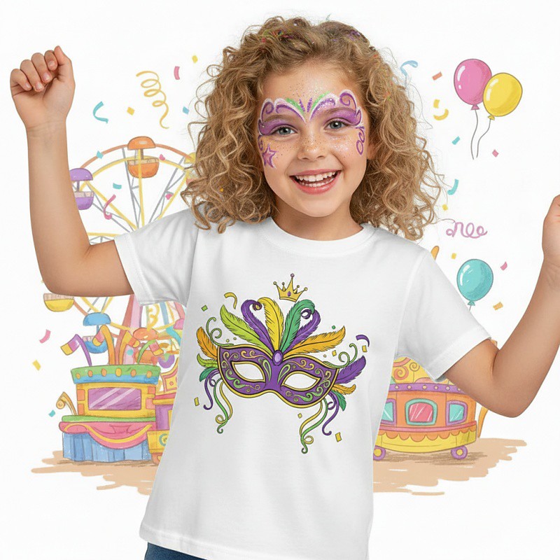 100% Cotton Mardi Gras 2026 Carnival Kids Girls' Blue Black White Graphic Mask T shirt Tee Crew Neck Short Sleeve Vacation Sports Outdoor Dailywear Active Vacation Casual Printing Spring All Seasons