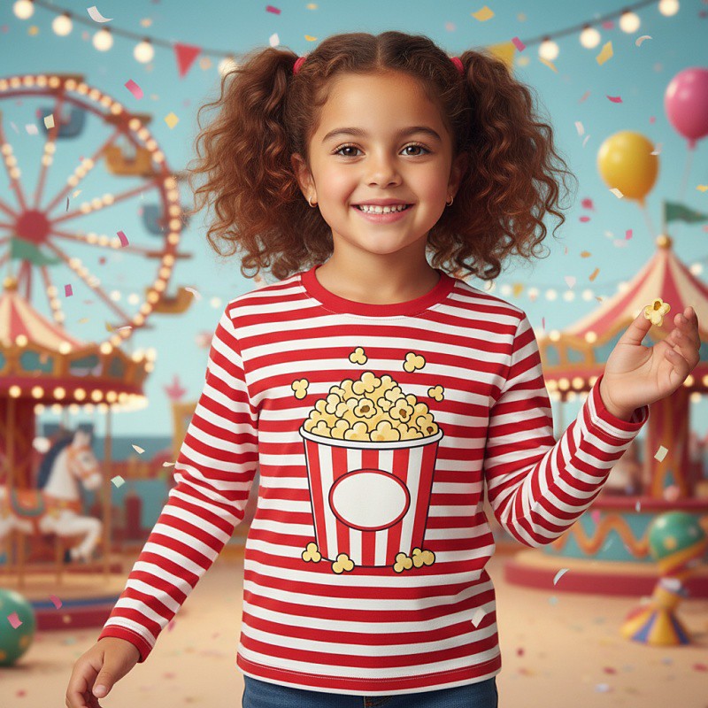 Carnival Costume 2026 Girls' 3D Graphic Striped T shirt Tee Long Sleeve 3D Print Spring Fall Sports Fashion Streetwear Kids 4-12 Years Crew Neck Casual Daily Outdoor Regular Fit