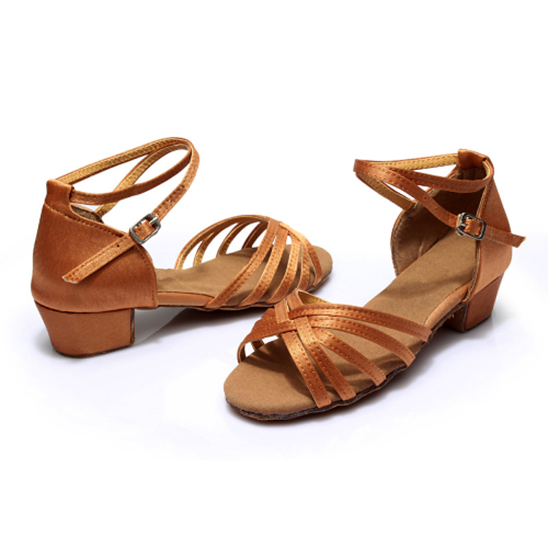 Women's Latin Shoes Ballroom Shoes Salsa Shoes Line Dance Performance Satin Basic Sandal Heel Buckle Solid Color Cuban Heel Buckle Leopard Black Dark Brown